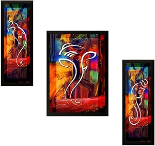 SAF Extra Large Modern Ganesh Set of 3 Digital Reprint 28.5 inch x 19.5 inch Painting (SALLL7500) PrintSA7500