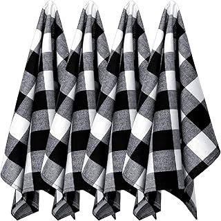 Elcoho 4パック バッファロー格子柄 ディッシュタオル コットンチェック柄 ディッシュタオル オーバーサイズ 18 x 28インチ インドア/アウトドア/格子縞 ホーム装飾 ブラック&ホワイト