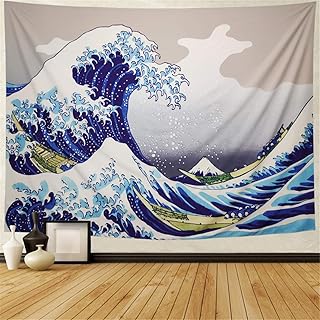 Lahashoker タペストリー 壁掛けタペストリー 大波の神奈川 壁掛けタペストリー 富士のタペストリー ウキョーエ プリント 日本のアートタペストリー リビングルーム ベッドルーム 寮の装飾に M/51.2' X 59.1'