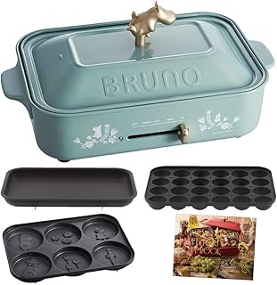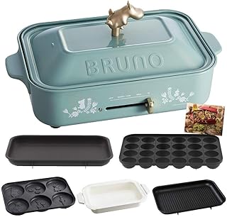 BRUNO ブルーノ コンパクトホットプレート 本体 プレート3種( たこ焼き 平面 マルチ ) レシピブック 付きムーミン Moomin おすすめ おしゃれ かわいい これ1台 蓋 ふた付き 温度調節 洗いやすい 1人 2人 3人 用 小型 小さいサイズ 少人数 ひとり暮らしにも BOE059-BGR 1700573