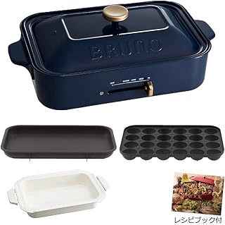 【レシピブック付き】BRUNO コンパクトホットプレート (ネイビー, 3種プレート+レシピブックセット)