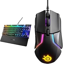 【セット買い】SteelSeries ゲーミングキーボード テンキーレス 赤軸 有線 英語配列 有機ELディスプレイ搭載 Apex 7 TKL US Red Switch 64646 & ゲーミングマウス 有線 デュアルセンサー 重量・重心カスタマイズ機能 32ビットARM プロセッサー搭載 Rival 600 62446