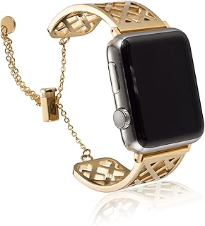 Apple Watch 交換用 腕時計ベルト クロス 透かし彫り腕時計ベルト 38mm 42mm Apple Watch腕時計バンド 上質腕時計ベルト (42mm, ゴールド)