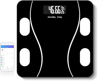 体重計 体組成計 体脂肪計 スマホ連動 Bluetooth対応 スマートスケール ヘルスメーター 体重/体脂肪率/体水分率/骨量/基礎代謝量/内臓脂肪レベル/BMIなど測定可能 Fitbit/Apple Healthと連携 iOS/Androidアプリで健康管理 体重管理 肥満予防 ダイエット 電池付き 薄型 (ブラック)(黒)