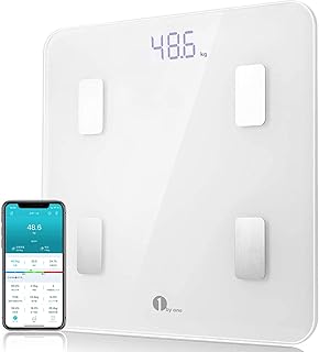 1byone 体重計 体組成計 体脂肪計 薄型 高精度 Bluetooth対応 ボディスケール 体重/体脂肪率/体水分率/骨量/基礎代謝量/BMIなど14種類のデータを測定 健康管理 iOS/Android対応 スマホでデータ管理 日本語説明書付き A-JP15 ホワイト