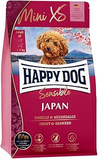 HAPPY DOG (ハッピードッグ) ミニ XS ジャパン (チキン、トラウト&海藻) 胃腸・皮膚被毛ケア 超小型犬用 成犬〜シニア 超小粒 - グルテンフリー 無添加 ヒューマングレード ドイツ製 ドッグフード (1.3kg)