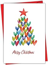 NobleWorks ホリデーハーツ - メリークリスマス グリーティングカード 封筒付き (4.63 x 6.75インチ) - マルチカラー ハート型装飾 C2916AXSG