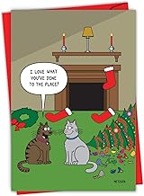 NobleWorks 猫 クリスマスデコレーション - メリークリスマス グリーティングカード 封筒付き (4.63 x 6.75インチ) - ホストにどれだけ家を愛しているかを伝えましょう C2912XSG