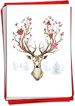 The Best Card Company 開花トナカイ - 12箱入り メリークリスマス グリーティングカード 封筒付き (4.63 x 6.75インチ) - 冬シーズナルフラワーアントラー C7378FXSG-B12x1