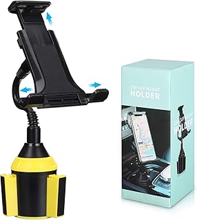Jisoncase 車載用ホルダー ドリンク スマホホルダー タブレットホルダー 4-10.5インチ全機種対応 カップ式 iphone 車載ホルダー 片手操作 取り付け簡単 携帯ホルダー 伸縮フレキシブルアーム 360度角度調整 スマホ固定スタンド 手帳型ケース対応 日本語説明書付き (ブラック&イエロー)