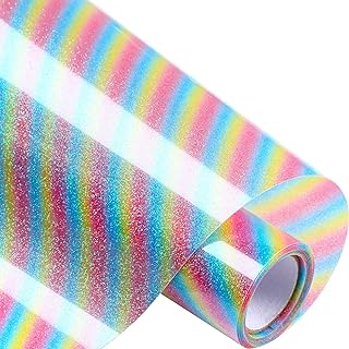グリッター 熱転写ビニール 12インチ x 5フィート HTVロール Tシャツ 衣類 帽子 アイロン HTV用 クリカット カメオ ヒートプレスマシン 昇華 レインボーカラー