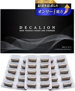 自信を持ってオススメできる「DECALION(デカリオン)」が誕生です。 【厳選した成分を独自配合】効率を求めて研究を積み重ねた結果、遂にたどりついた厳選成分の黄金比。 動物系成分8種類、植物系成分27種類、ビタミン・ミネラル成分32種類をこだわって配合しました! 【特許成分バイオペリン】バイオペリンは他成分をサポートする特許取得成分です。 これにより亜鉛やL-シトルリン、アルギニンやマカ、マムシ、すっぽんサソリなど世界中から厳選して集めた67種類の成分が自信増大につながります! 【完全国内生産】厳しい検査をクリアした成分を厳選し、日本のGMP認定工場で製造され品質管理が徹底された安全な商品で、第3者機関にて放射能濃度検査も実施済みです。 自信を持ってオススメできる「DECALION(デカリオン)」が誕生です。 【厳選した成分を独自配合】効率を求めて研究を積み重ねた結果、遂にたどりついた厳選成分の黄金比。 動物系成分8種類、植物系成分27種類、ビタミン・ミネラル成分32種類をこだわって配合しました! 【特許成分バイオペリン】バイオペリンは他成分をサポートする特許取得成分です。 これにより亜鉛やL-シトルリン、アルギニンやマカ、マムシ、すっぽんサソリなど世界中から厳選して集めた67種類の成分が自信増大につながります! 【完全国内生産】厳しい検査をクリアした成分を厳選し、日本のGMP認定工場で製造され品質管理が徹底された安全な商品で、第3者機関にて放射能濃度検査も実施済みです。